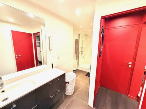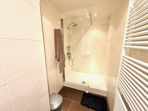 Demi-étage : deux chambres confortables de 15,55 m2 et 15,40 m2, un dégagement, un WC indépendant (1,05 m2), une salle d’eau moderne de 6,70 m2 avec douche à l’italienne et fenêtre, ainsi qu’un demi-palier de 2,5 m2.