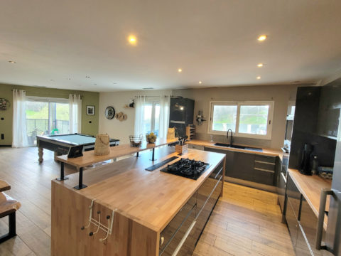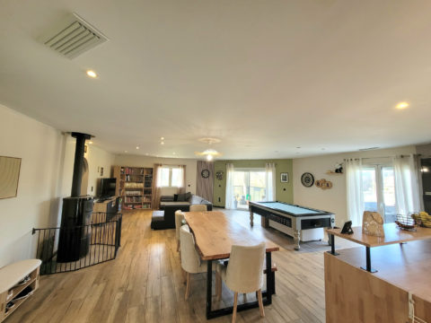 La maison dispose de 4 chambres, dont 2 situées à l’étage, 2 bureaux supplémentaires au rez-de-chaussé permettant une organisation idéale pour une famille nombreuse, un espace télétravail ou des chambres d’amis.