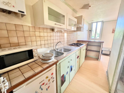 Le bien se compose de deux logements indépendants, sans connections entre les deux, pour une superficie totale d’environ 59 m2 habitables. Nous trouverons un premier appartement en rez-de-chaussée qui développe 29,8 m2 comprenant une chambre de 10,4 m2, une pièce de vie de 15,7 m2 et une salle d’eau. L’étage, d’une configuration similaire, propose un second appartement de 28,9 m2 avec une chambre de 9,7 m2, une pièce de vie de 15,5 m2 et une salle d’eau. Le tout repose sur deux parcelles, incluant également un garage de 26,4 m2 ainsi qu’un jardin extrêmement paisible. Le bien est équipé d’un mix de menuiseries simple vitrage bois et double vitrage PVC, des deux chaudières gaz pour la production d’eau chaude, de convecteurs électriques pour le chauffage et bénéficie d’une isolation périphérique. Des travaux seront à prévoir, notamment sur les postes de second oeuvre et pour une mise au goût du jour.