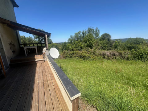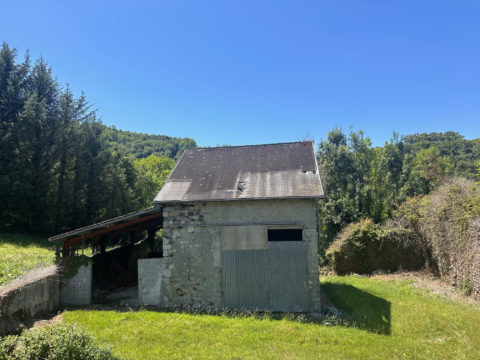 Parcelle en surplomb, avec un jardin agréable et dégagé. Dépendance / grange de 56 m2 au sol, avec une hauteur impressionnante de 7,80 m jusqu’à la poutre faîtière.