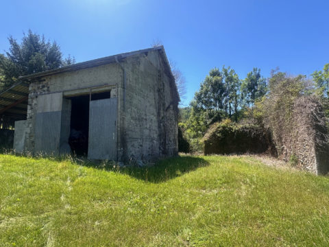 Parcelle en surplomb, avec un jardin agréable et dégagé. Dépendance / grange de 56 m2 au sol, avec une hauteur impressionnante de 7,80 m jusqu’à la poutre faîtière.