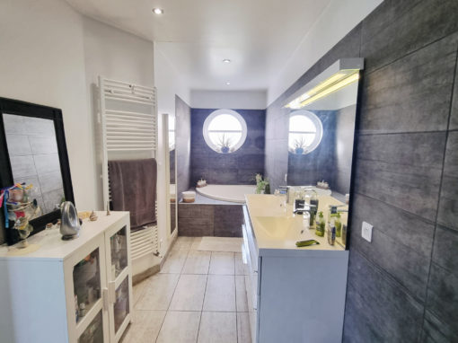J’ai aussi des éléments techniques avec un double vitrage,des volets bois,une toîture neuve ,un portail électrique (pratique par temps pluvieux),une chaudiére gaz à condensation ,une VMC.
